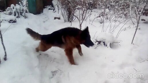 Жасминка и Хеддка бегают по заснеженному двору. Смотрите со звуком!