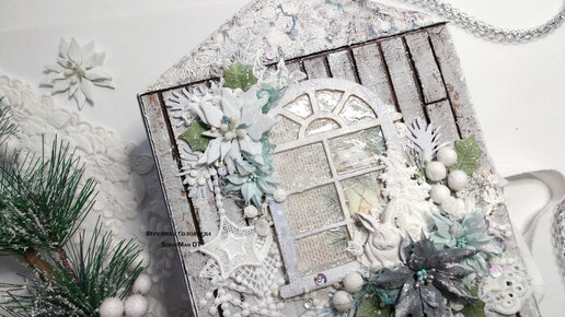 Обзор новогоднего альбома в форме домика. Скрапбукинг