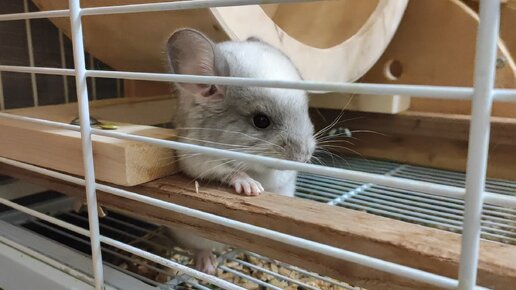 Шон первый раз пробует пробежаться на колесе, шиншилла в колесе