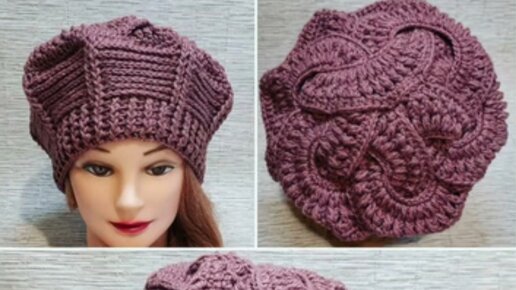 Берет крючком.теплый,оригинальный.Имитация фриформ❤.mp4