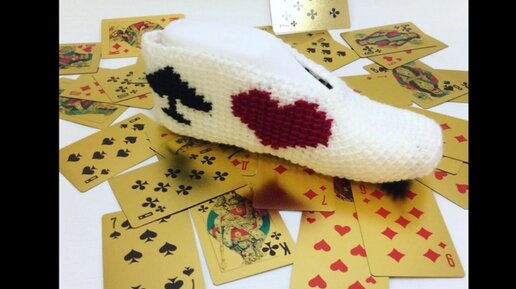Следки тунисским вязанием с узором карточные масти.mp4