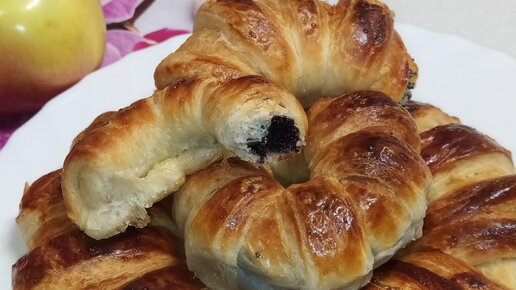 Булочки из слоеного дрожжевого теста с маком и яблоками.