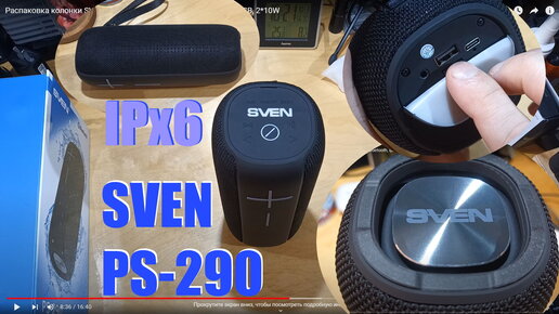 СТЕРЕО!! "Пляжная" колонка SVEN PS-290 - Bluetooth, Ipx6, AUX, FM, TF, USB, 2*10W