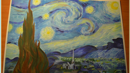 Как нарисовать Звездную ночь по мотивам Винсента Ван Гога. Гуашь