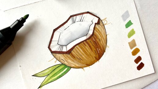 Рисуем кокос маркерами за 15 секунд! Быстрый урок по скетчингу маркерами. Простой поэтапный урок.