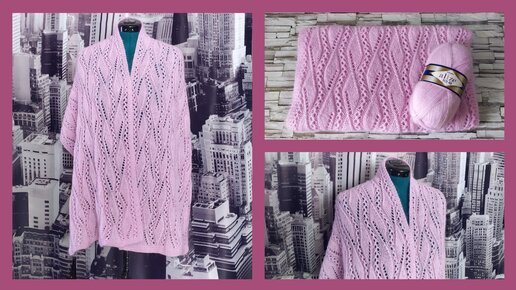 Ажурный палантин спицами из пряжи Alize Angora Real 40.МК.