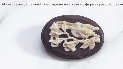 Брошь " Природа " Резьба по рогу , резьба по дереву .