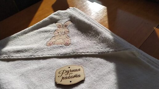 Зая от РТО. Прикладная вышивка.Банное полотенце с уголком.