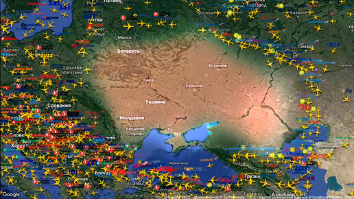 Что творится на радаре полётов. Миллионы тонн топлива в сутки. FlightRadar Март 2022