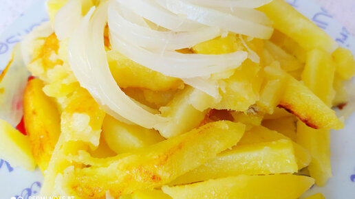 Жареная картошка с маринованным луком.