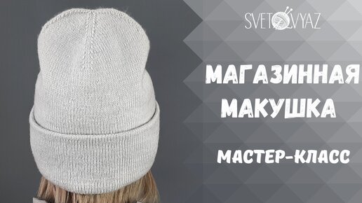 Двойная шапка бини с отворотом и магазинной макушкой спицами/ МК