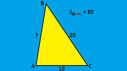 Известна площадь треугольника и длин двух сторон. Найти третью.