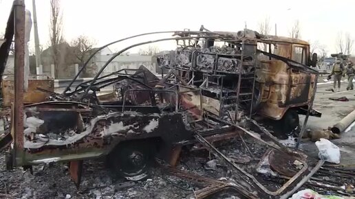 Боеприпасы и поврежденные украинские автомобили сняты на видео на окраине Херсона