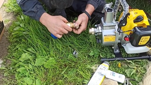 Абиссинская скважина на участке без электричества, с установкой мотопомпы.