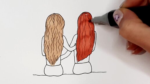 Как нарисовать двух девушек подруг/How to draw two girl friends