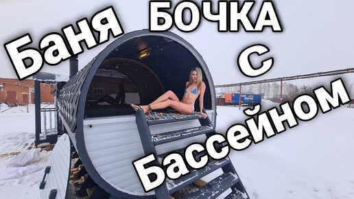 Баня-бочка 8000 Аква с русской печью Ио стоун и бассейном в парной и на улице, отопление ПСО!