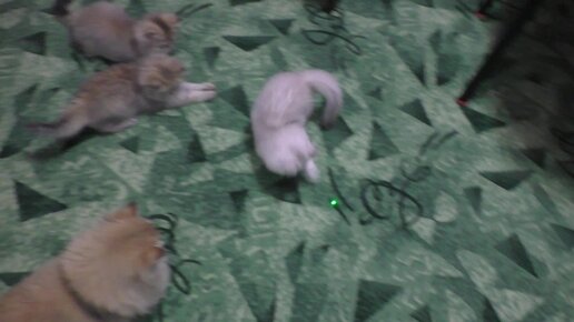 Кошки и маленькие котята охотятся за зеленой точкой, которую невозможно поймать.