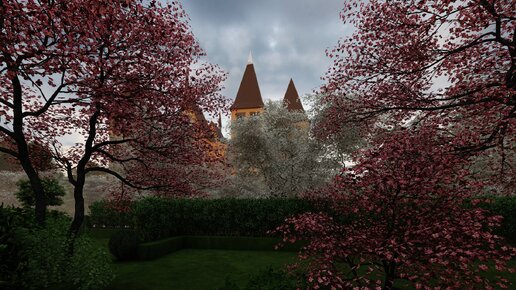 Вид на цветущий сад, с террасы Малфой-мэнора