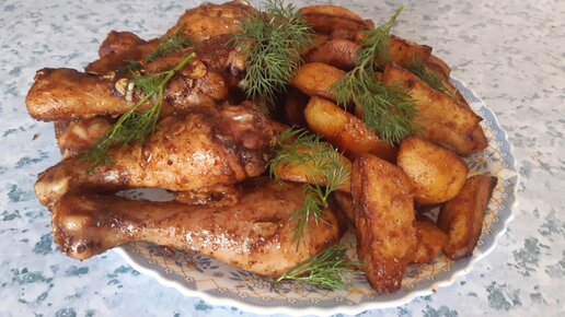 Куриный голень в соевый соусе//Маринованный голень с картошкой в духовке.
