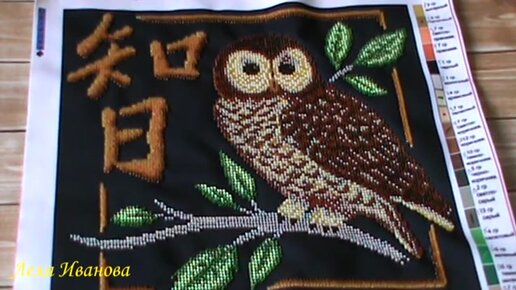 Вышивка бисером. Иероглиф "Мудрость". Готовая работа.