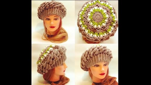 Далее: Летний ажурный берет крючком с использованием ленточного кружева crochet beret.mp4