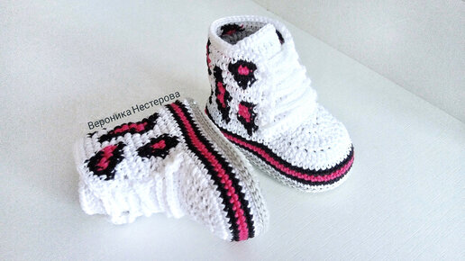 Вязаные пинетки с принтом/ пинетки сапожки крючком/ подошва 11 см/ Часть 1.
