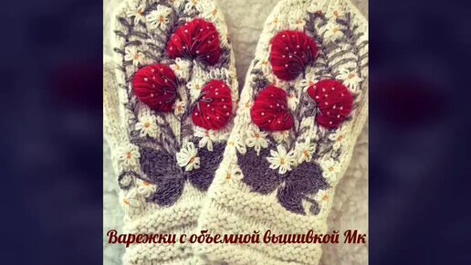 Варежки спицами Зимняя клубника,ОБЪЕМНАЯ ВЫШИВКА.mp4