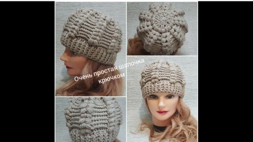 Очень простая шапка крючком с красивой макушкой❤.mp4