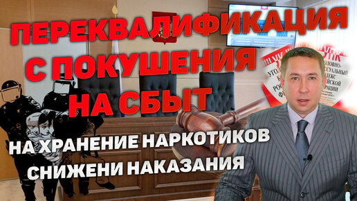 Переквалификация с покушения на сбыт наркотиков на их хранение. Снижение наказания.