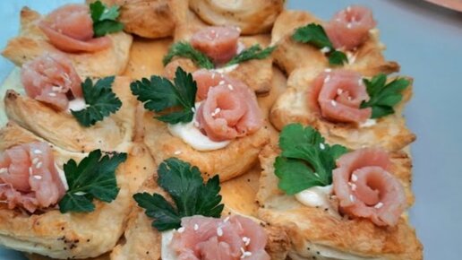 Лучшая праздничная Закуска!Вкусная закуска из слоенного теста с семгой.