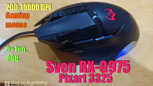 Игровая мышь проводная Sven RX-G975 / 9+1кл. / сенсор Pixart 3325 / 200-10000 DPI / ПО / RGB, черный