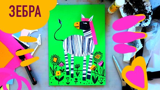 Как нарисовать зебру, делаем коллаж, пошаговый урок по аппликации для детей