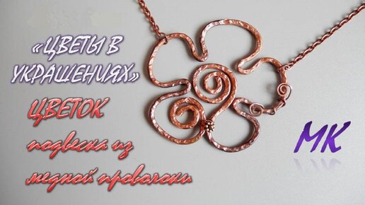 ЦВЕТОК подвеска из медной проволоки. Мятый металл