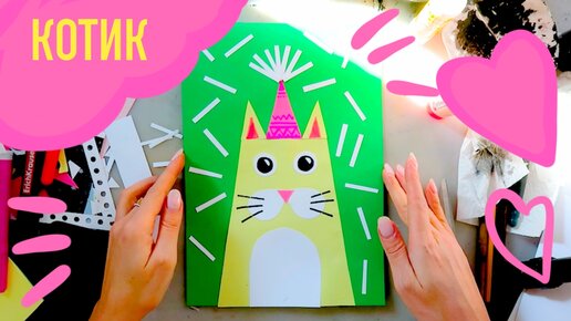 Как сделать кота из бумаги, делаем коллаж, пошаговый урок по аппликации для детей