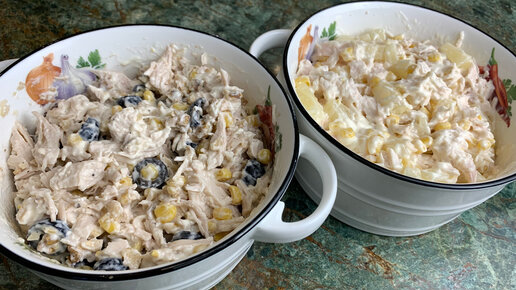 Два потрясающе вкусных салата из куриной грудки! Салат с ананасами и салат с маслинами.