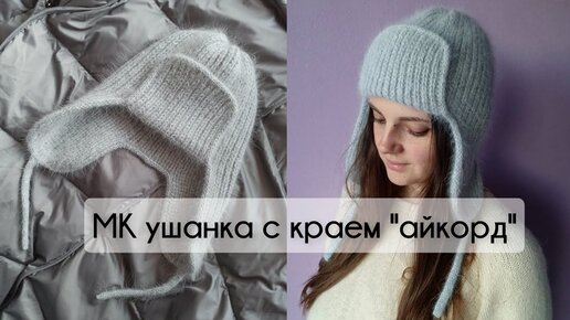 МК Шапка ушанка из пуха норки спицами с краем айкорд