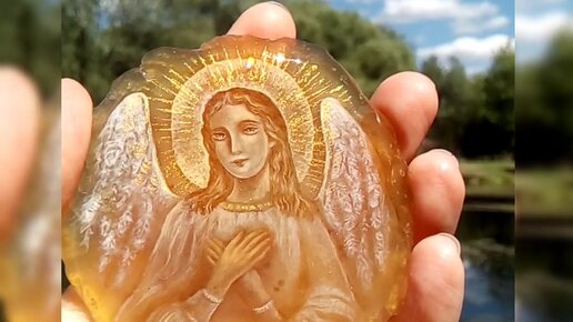 👼 Ангел Хранитель 😇 Кулон с росписью на срезе агата. Лаковая миниатюра. Миниатюрная живопись. Катерина Аксенова.😇