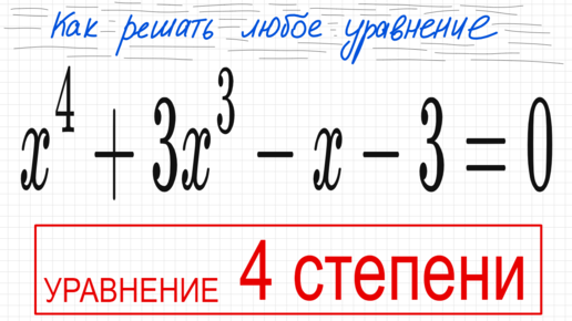 №3 Уравнение 4 степени x^4+3x^3-x-3=0 Группировка разложить на множители Деление столбиком многочлена на скобку теорема Безу