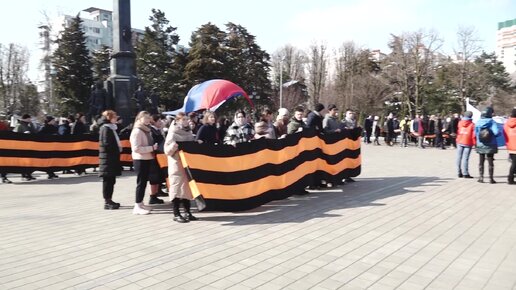 Школьники Краснодара провели патриотическую акцию и растянули Георгиевскую ленту длиной 600 метров