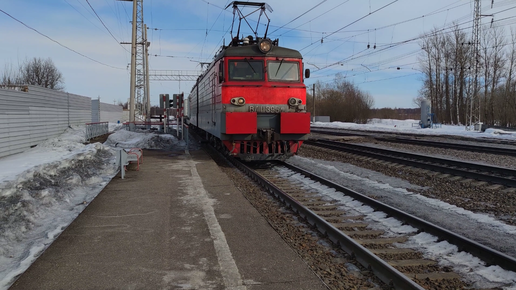 Остановка грузового поезда на станции. Электровоз ВЛ11М-395.