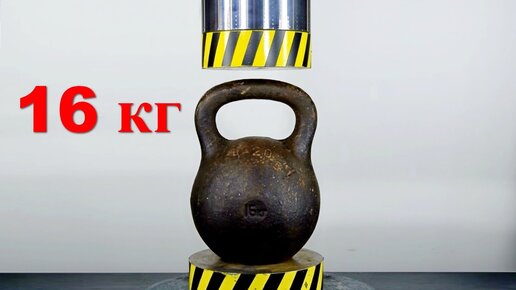 Давим 500-тонным прессом 16 килограммовую гирю в поисках золота
