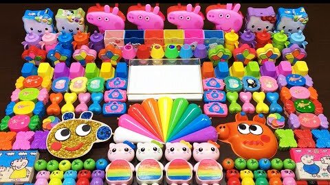 PEPPA PIG SLIME & RAINBOW PIPING BAG ! Mixing Random Things into Glossy Slime