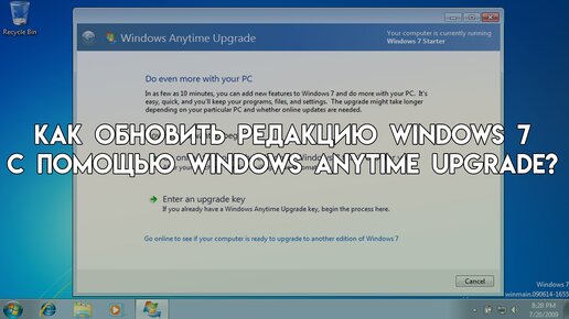 ОБНОВЛЕНИЕ РЕДАКЦИИ WINDOWS 7 С ПОМОЩЬЮ WINDOWS ANYTIME UPGRADE В 2022 ГОДУ