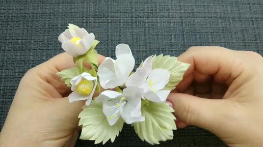 Цветы из шелка. Веточка яблони. Брошь. Brooch. 14.03.22. #100