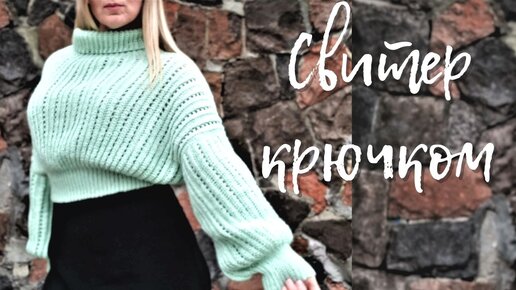 Свитер крючком женский, свитер с высокой горловиной