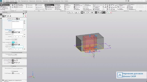 Мини-урок Компас 3D. Вырез в модели смещением эскиза относительно плоскости