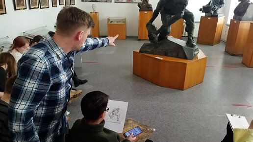 Юные живописцы - в зале скульптур Ивана Шадра.