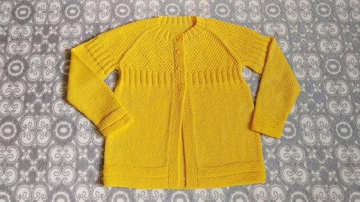 Кардиган на девочку 8 лет спицами. Реглан сверху с ростком. МК.
