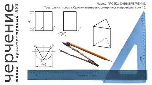 Треугольная призма. Ортогональные и изометрическая проекции. Урок 10.(ПРОЕКЦИОННОЕ ЧЕРЧЕНИЕ)