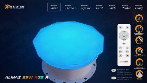 Обзор как светит и какие режимы у потолочного светодиодного светильника - люстра с пультом Almaz 25w RGB от Estares